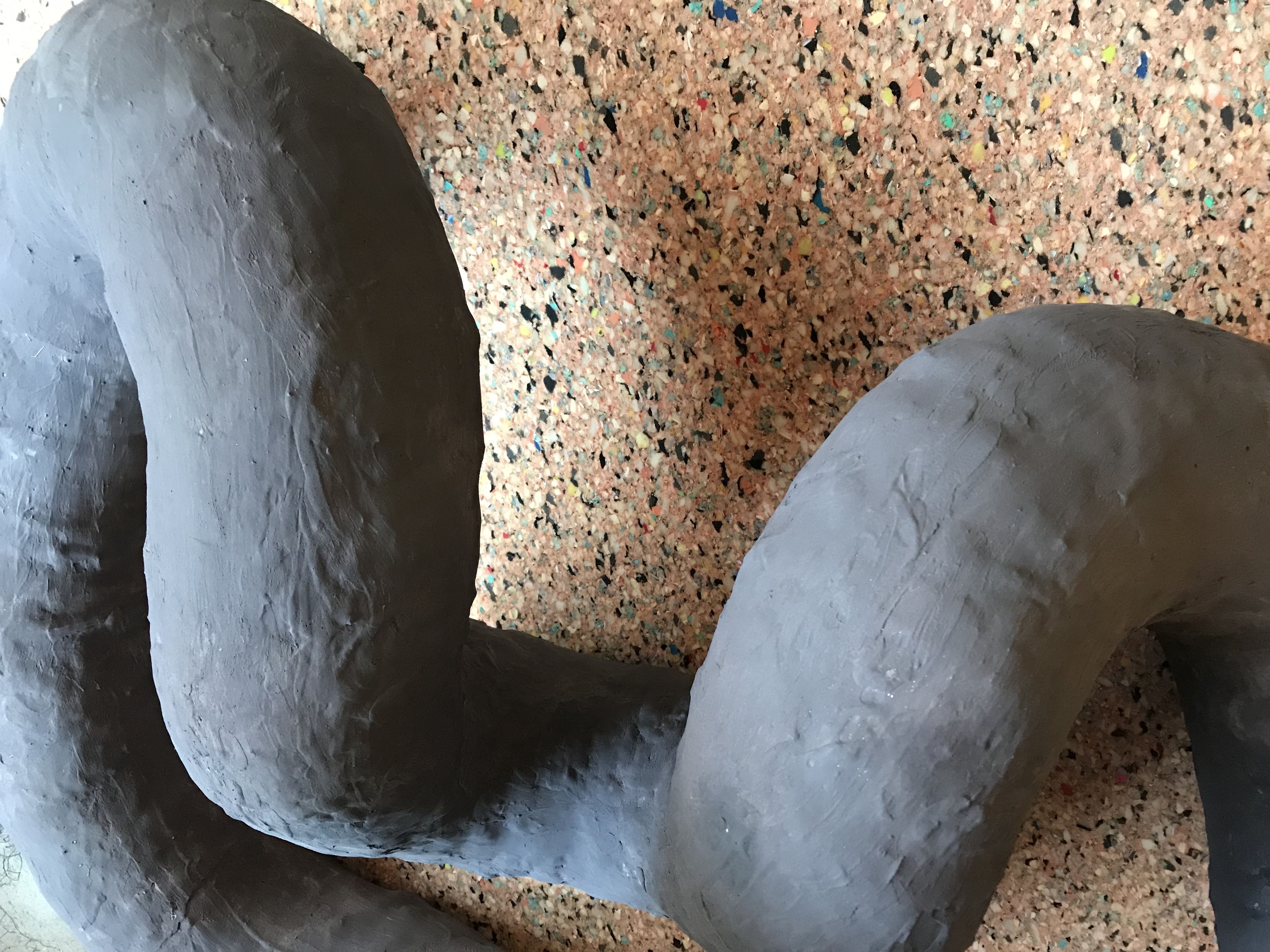 The exhibition, Underbelly, explores the materiality of human and non-human bodies. The work uses materials such as plaster, carpet padding, plastic, resin, silicone, fabric and LCD screens to create abstract forms that bulge beyond borders, slide over edges, and seep through cracks. This exhibition holds tension between the bounded form of a body’s perceived exterior and an unknowable interior world; between control and unruliness.